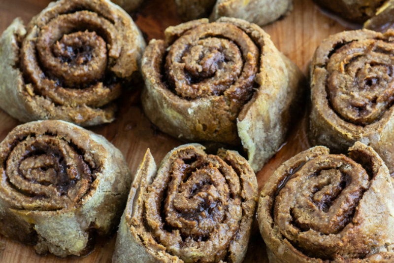 2. Mix the flax seed egg, pumpkin purée, coconut oil and coconut milk with the dry ingredients and knead until well combined. Allow to rise for 30 mins.